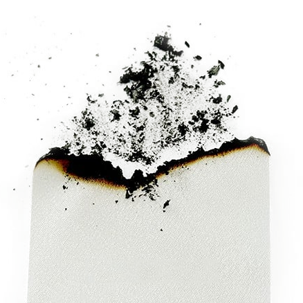 The ash from burning is black, crispy and turns to powder easily when twisted in fingers.