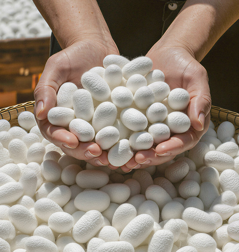 Drawing on our experience and local expertise, we chose Bama — a region famed for its pure air, mineral-rich waters and abundant mulberry groves. In this naturally sustainable setting, silkworms yield longer, stronger and more resilient fibers, with single filaments reaching up to 1,500 meters. That difference isn’t just technical — it’s felt: silk that’s softer to the touch, more durable over time, and kinder to your skin, your sleep and your daily rituals.
