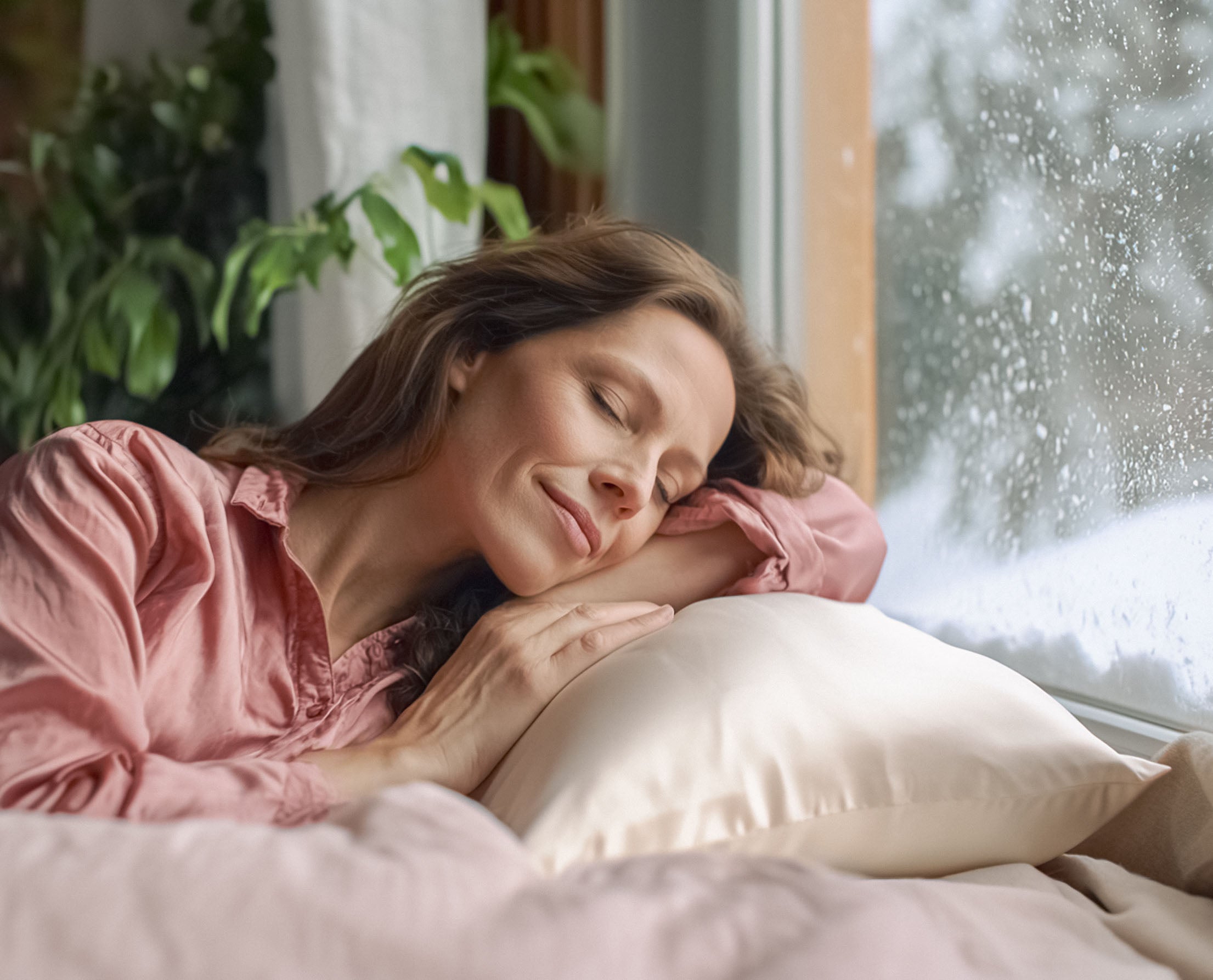 100% natural mulberry silk — smooth, breathable, temperature-regulating.